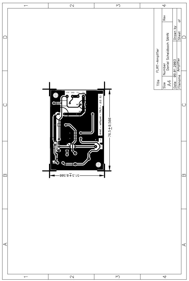 Es folgen Schaltplan, Layout, Bestückungsplan, Leiterplattenbohrplan, Druckstockzeichnung und Stückliste des NF - Verstärkers, jeweils gezeichnet mittels P-CAD 2001 von der Firma ACCEL.
